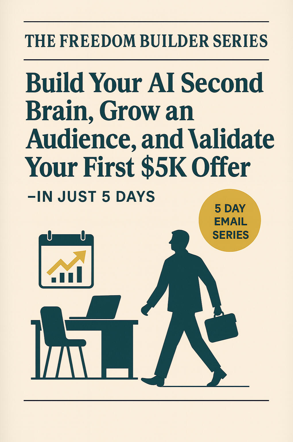 This free 5-day email series shows you how to build your Second Brain with AI, grow an audience from scratch, and validate a high-leverage micro-offer—without burning out or quitting your job.